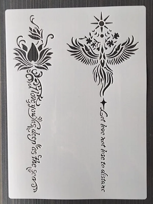 Avoir des outils de qualité est primordial pour favoriser l’expression personnelle. Notre pochoir d’écriture est non seulement fonctionnel, mais il incarne également l’élégance et la créativité. Chaque lettre, chaque motif a été pensé pour vous aider à transformer vos idées en œuvres d’art.